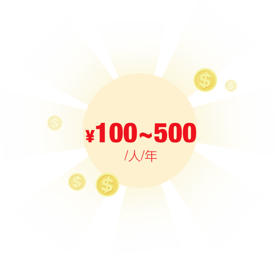 100元~500元/人/年